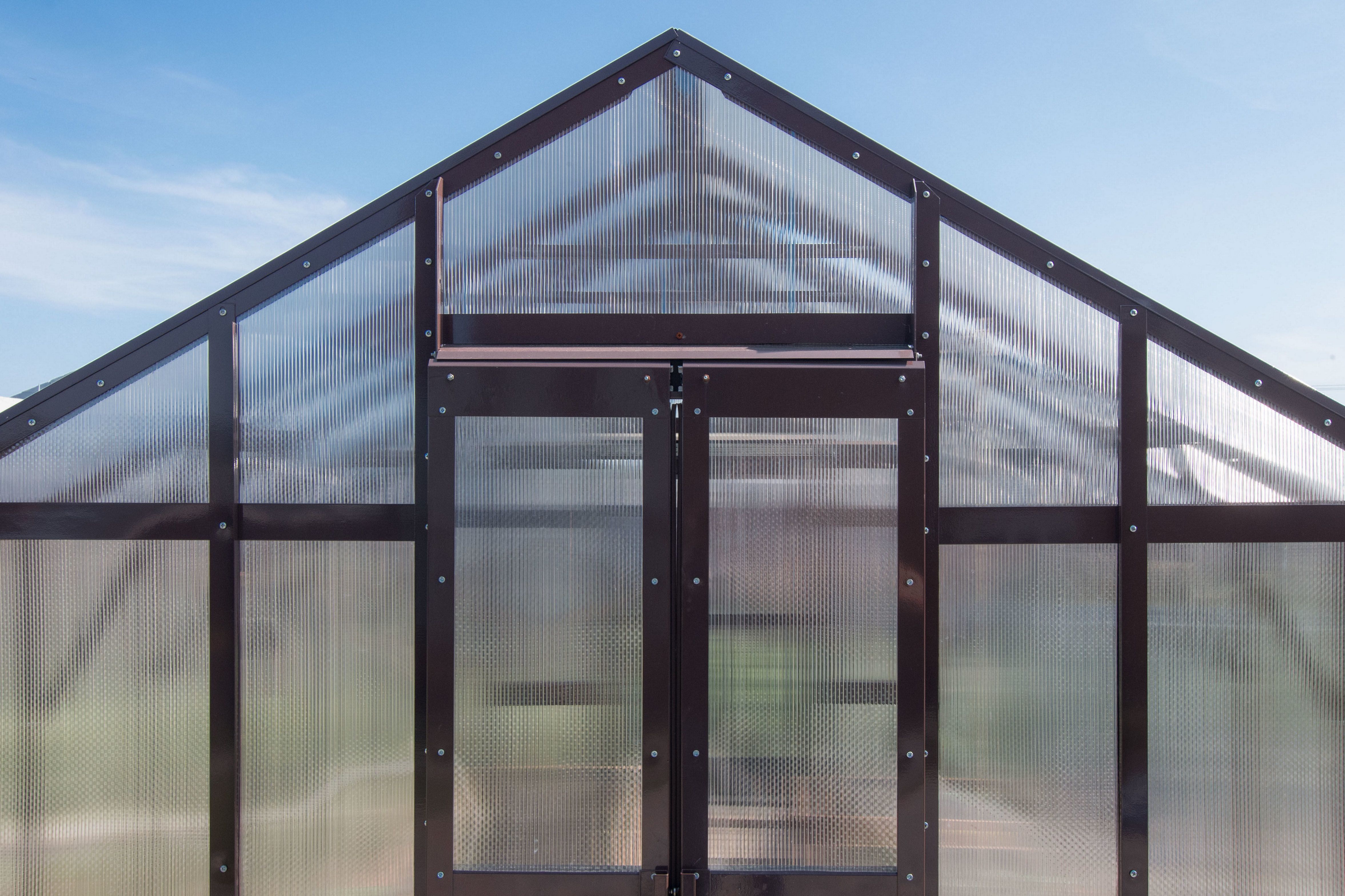 Каркас — это основа конструкции, которая принимает на себя вес покрытия, снеговые и ветровые нагрузки, а также отвечает за стабильность геометрии теплицы на протяжении многих лет. Оцинкованный стальной профиль обеспечивает долговечность, высокую прочность и устойчивость к коррозии, а также сохраняет эстетичный внешний вид без регулярной покраски.